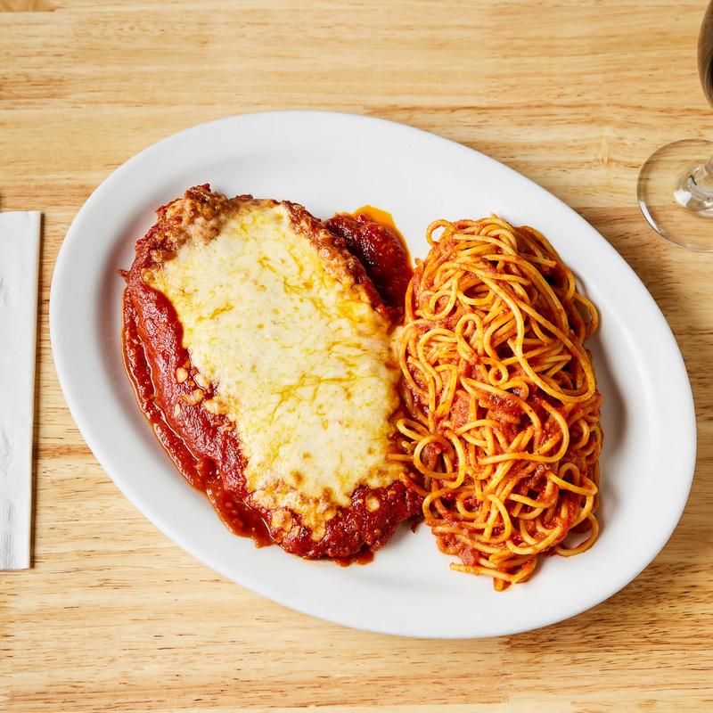 Half Tray $80.00 | Full Tray $160.00 • Tender chicken breast sautéed in Marsala wine & mushrooms. Served with spaghetti or vegetables (broccoli, zucchini & carrots).