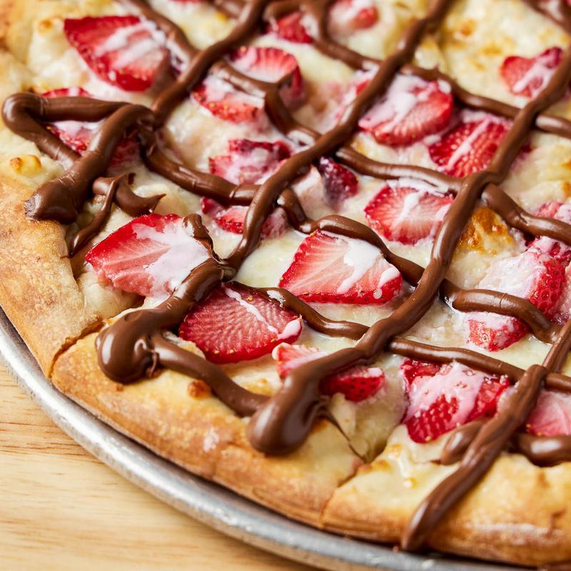 Mozzarella cheese, Nutella, an fresh strawberries.